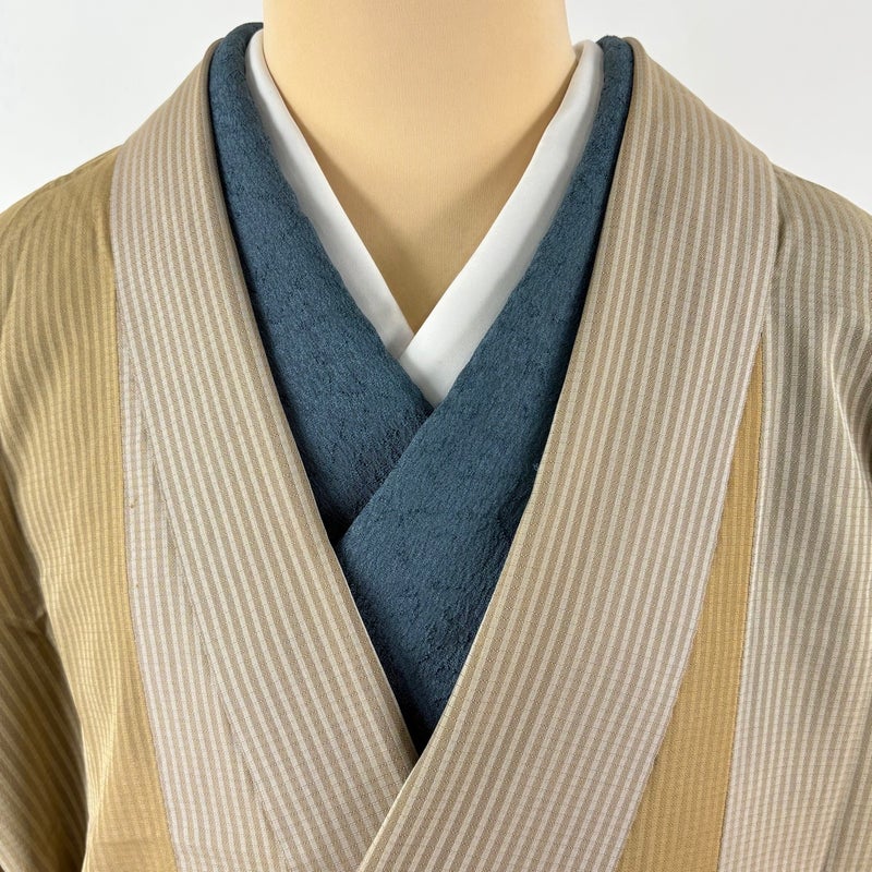 【道中着】 黄色系 薄黄土色 秀品 B 約120cm~約129cm 裄丈65cm (M)size 袖丈48cm 7990-9980 二万以下