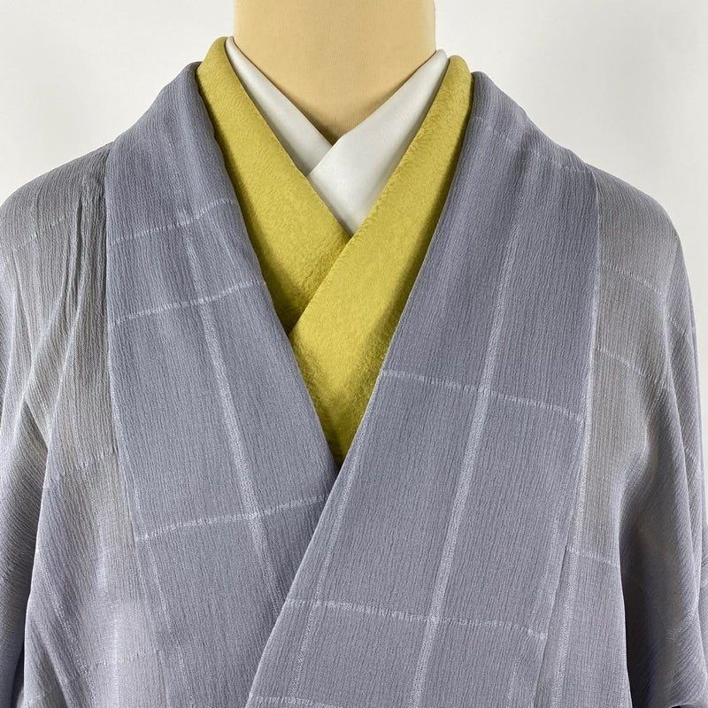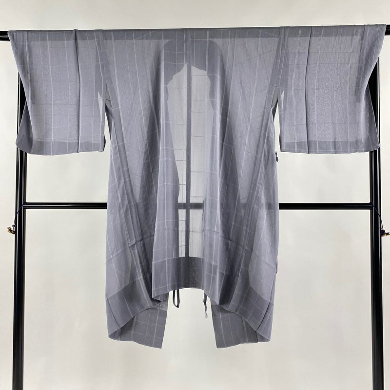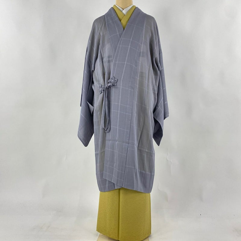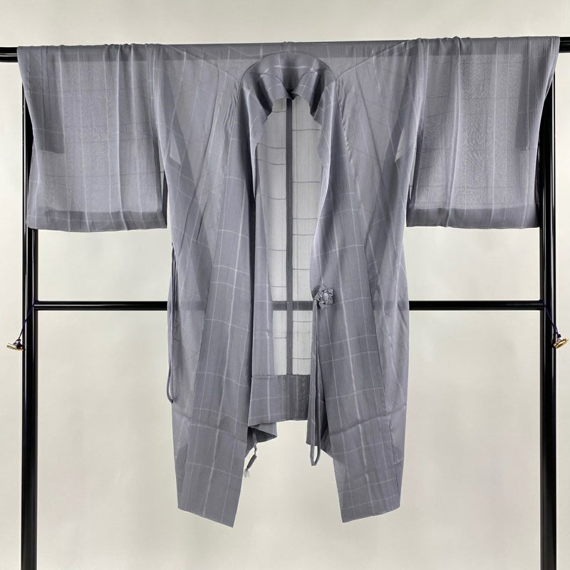 【道中着】 灰色系 灰色 逸品 A 約101cm~約110cm 裄丈69cm以上 (L)size 袖丈49cm 30000- 美品 五万以下