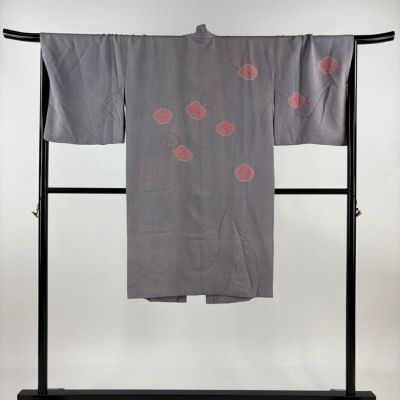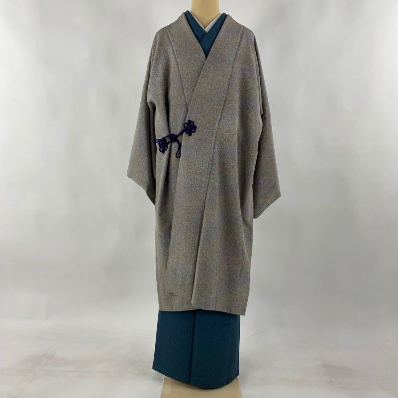 【道中着】 灰色系 灰紫 逸品 A 約111cm~約119cm 裄丈67cm-68cm (M)size 袖丈46cm以下 30000- 美品 五万以下
