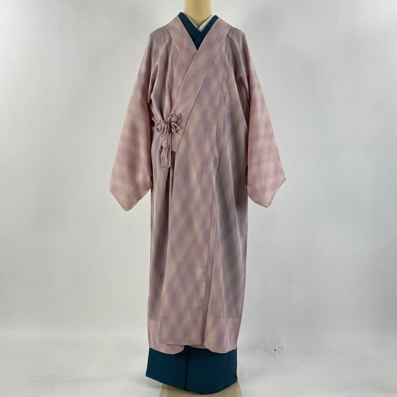 【道中着】 赤系 ピンク 逸品 B 約120cm~約129cm 裄丈67cm-68cm (L)size 袖丈48cm 9990-29990 二万以下