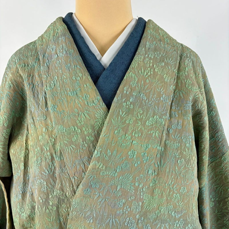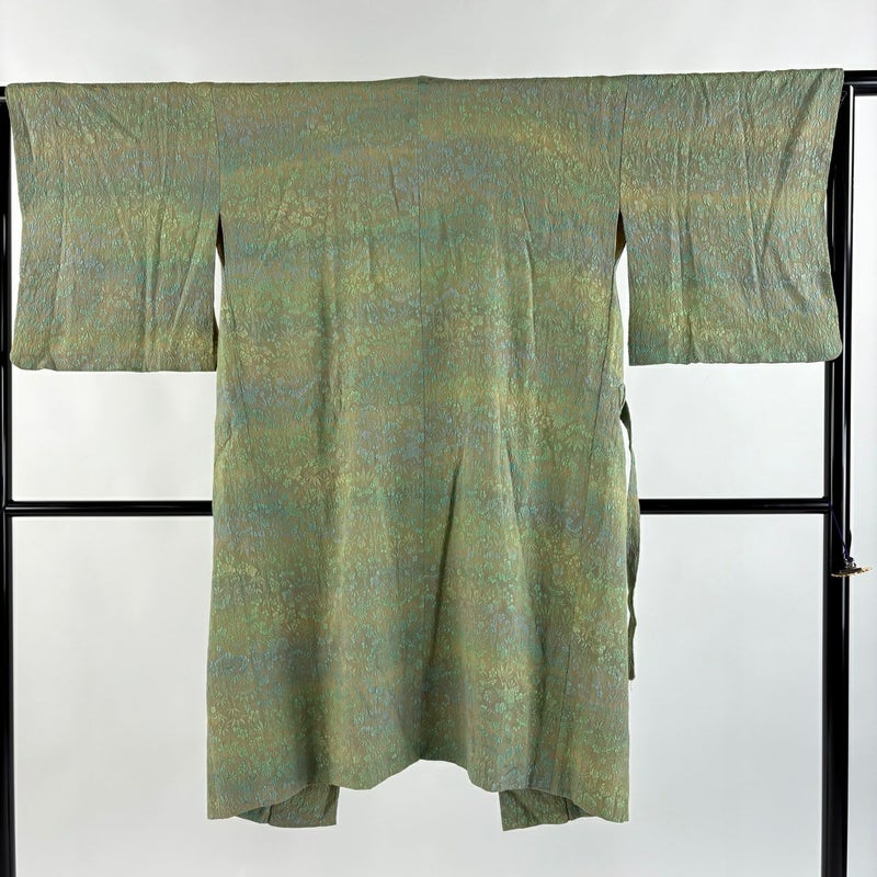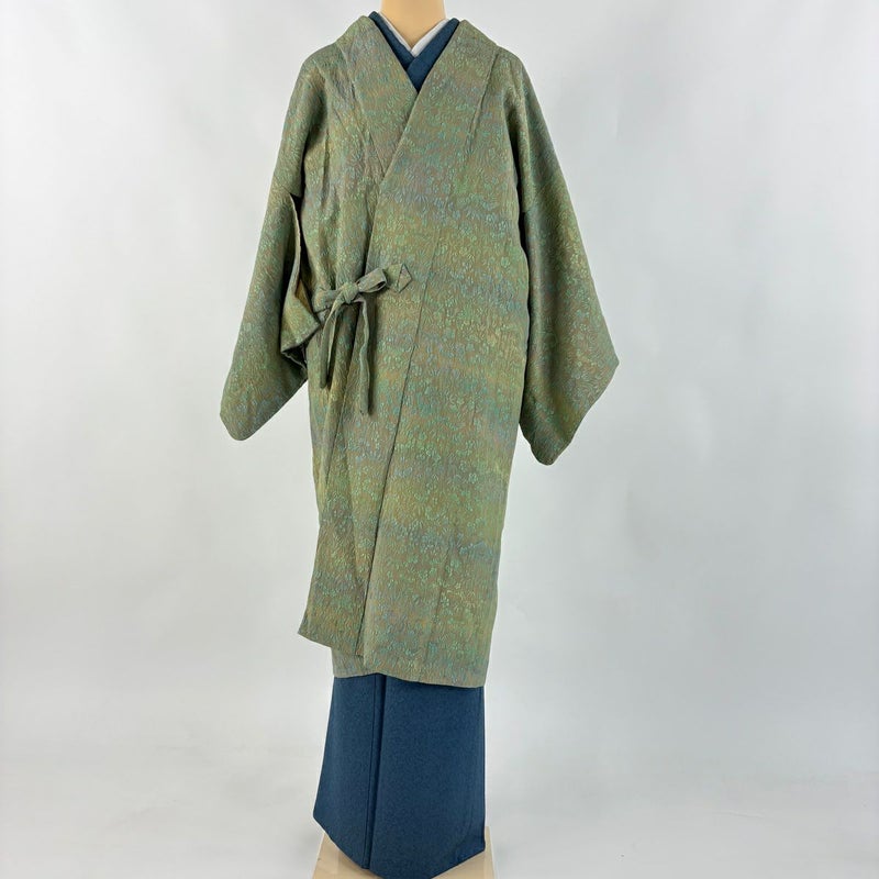 【道中着】 灰色系 灰緑 名品 B 約111cm~約119cm 裄丈63cm-64cm (S)size 袖丈46cm以下 4000-7980 二万以下