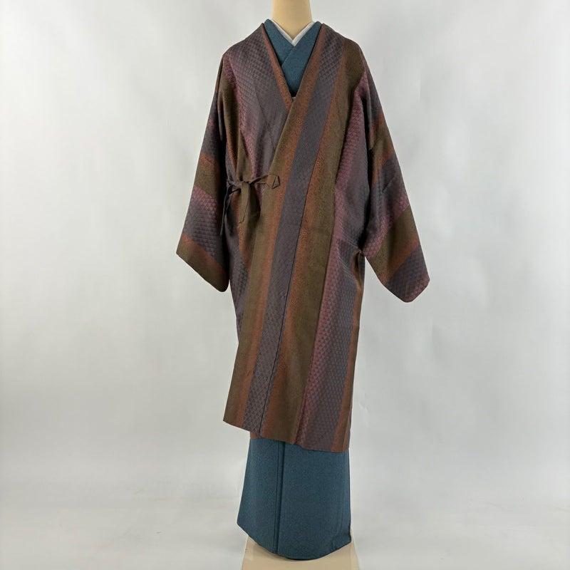 【道中着】 灰色系 灰紫 逸品 A 約111cm~約119cm 裄丈67cm-68cm (L)size 袖丈47cm 30000- 美品 五万以下