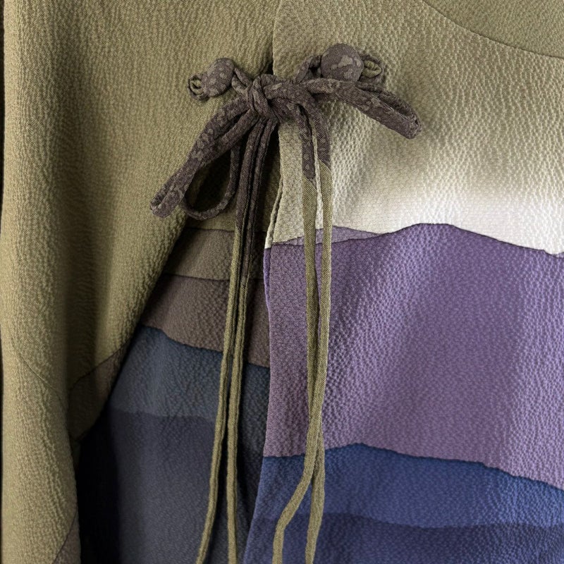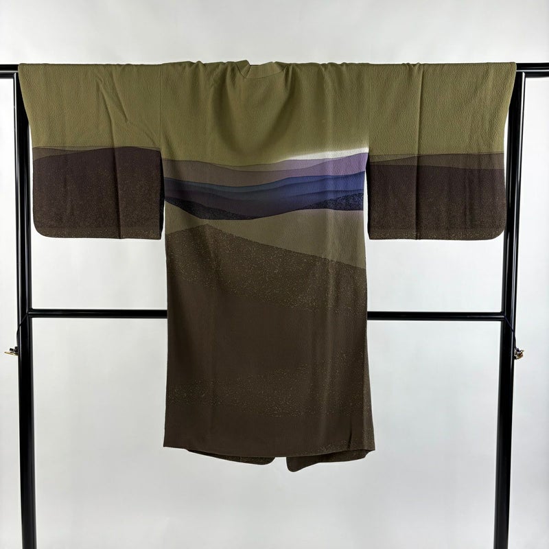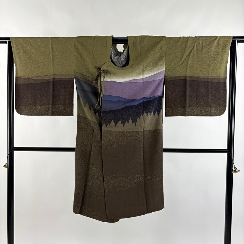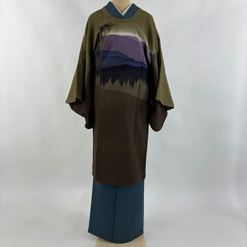 【道中着】 茶系 茶緑色 逸品 A 約101cm~約110cm 裄丈66cm (M)size 袖丈47cm 30000- 美品 五万以下