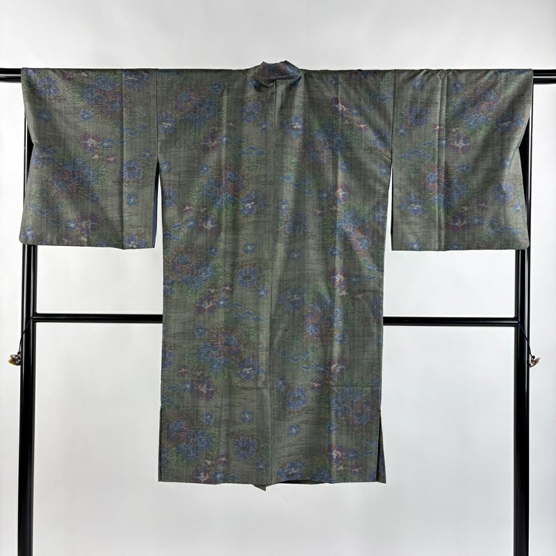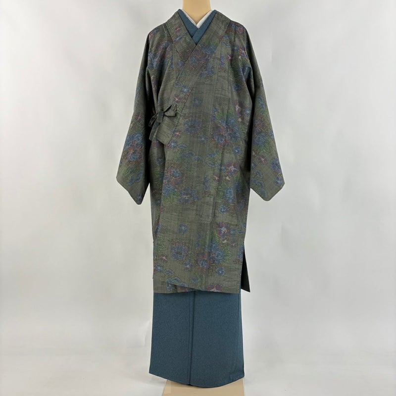 【道中着】 灰色系 灰緑 逸品 B 約101cm~約110cm 裄丈67cm-68cm (M)size 袖丈49cm 30000- 五万以下