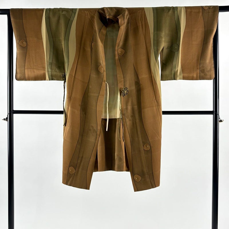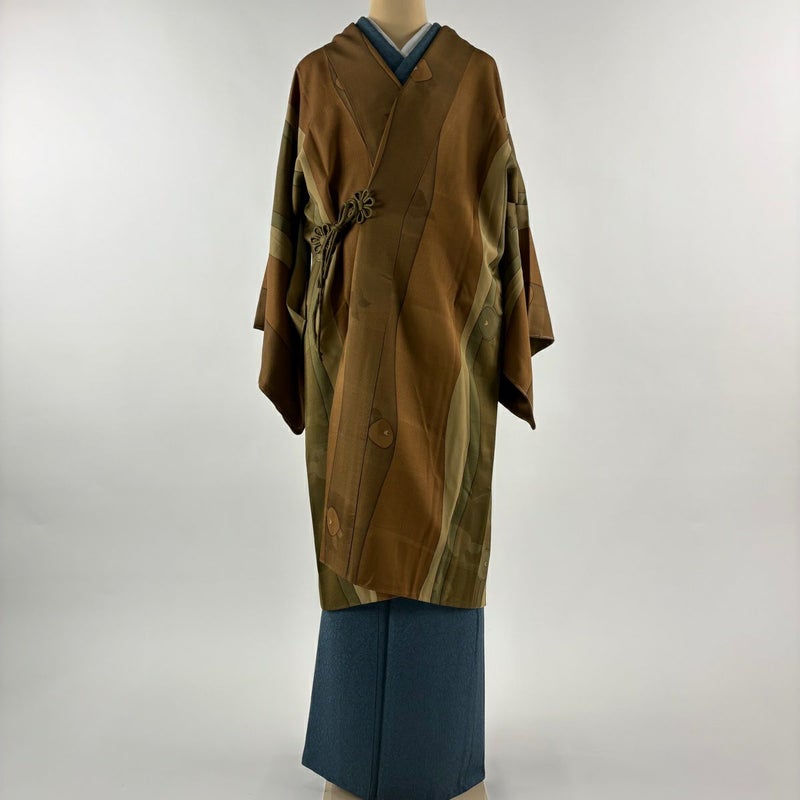 【道中着】 茶系 茶色 逸品 A 約101cm~約110cm 裄丈66cm (M)size 袖丈47cm 30000- 美品 五万以下