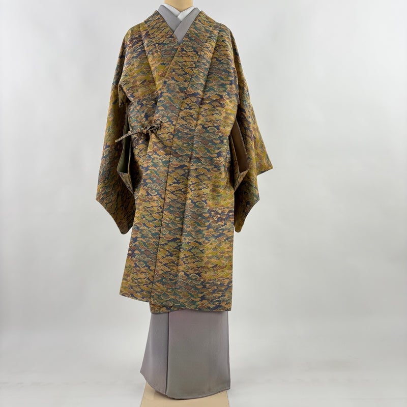 【道中着】 黄色系 からし色 逸品 A 約101cm~約110cm 裄丈67cm-68cm (L)size 袖丈50cm-60cm 30000- 美品 五万以下