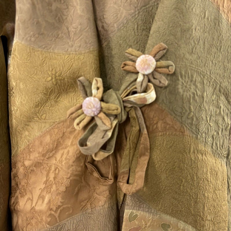 【道中着】 茶系 薄茶色 秀品 A 約100cm以下 裄丈66cm (M)size 袖丈47cm 9990-29990 美品 二万以下