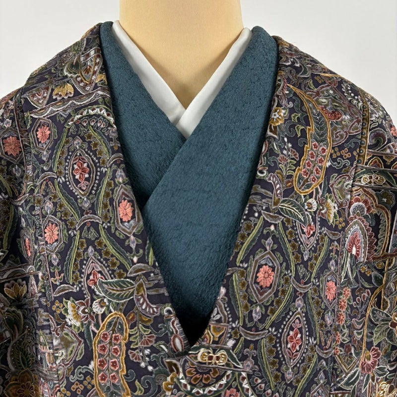 【着物ランク】逸品 【素材】正絹 【身丈】約112cm 【裄丈】約67cm 【袖丈】約48cm 【袖幅】約34.5cm 【サイズ】M 【状態ランク】ランクB 【着物着用シーン】お洒落着用、カジュアル