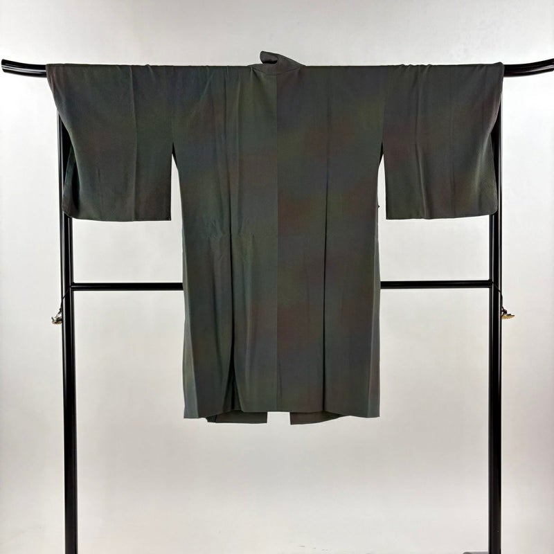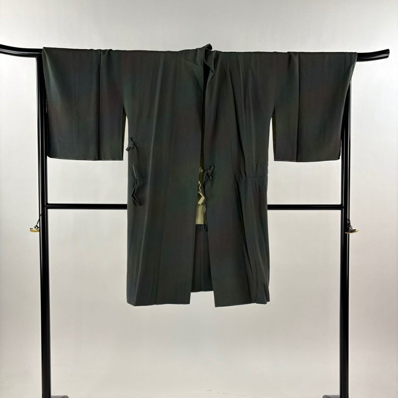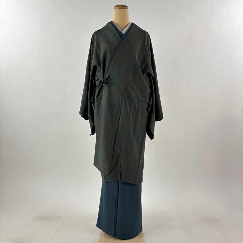 【道中着】 灰色系 灰緑 逸品 A 約101cm~約110cm 裄丈69cm以上 (L)size 袖丈47cm 30000- 美品 五万以下