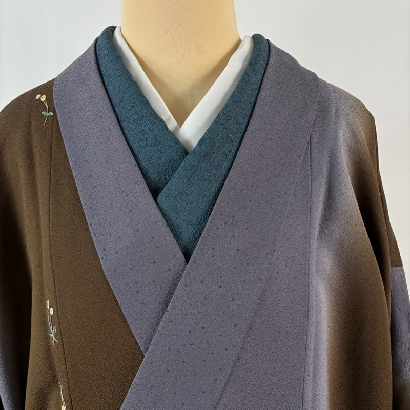 【道中着】 灰色系 灰紫 逸品 A 約101cm~約110cm 裄丈65cm (M)size 袖丈47cm 30000- 美品 五万以下