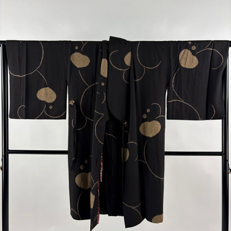 【着物ランク】逸品 【素材】正絹 【身丈】約102cm 【裄丈】約68cm 【袖丈】約47.5cm 【袖幅】約35cm 【サイズ】L 【状態ランク】ランクB 【着物着用シーン】お洒落着用、カジュアル