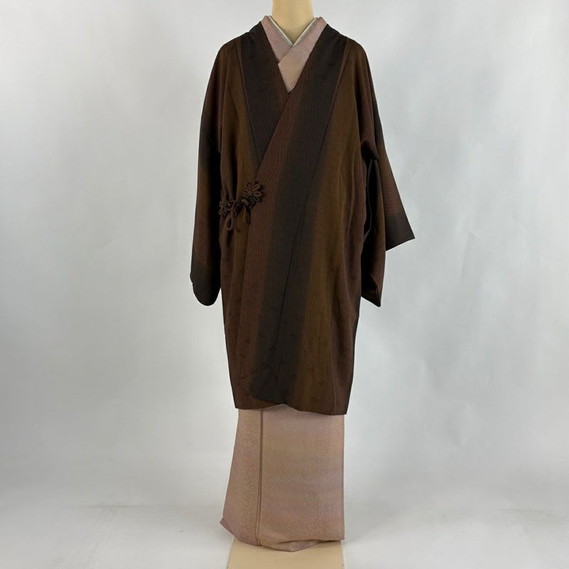 【道中着】 茶系 焦茶色 秀品 A 約100cm以下 裄丈63cm-64cm (M)size 袖丈47cm 9990-29990 美品 二万以下