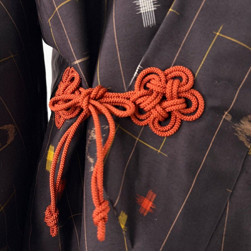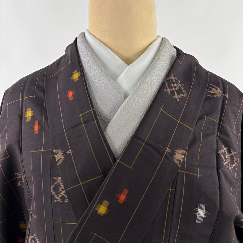 【道中着】 茶系 茶紫 秀品 A 約130cm~約139cm 裄丈63cm-64cm (M)size 袖丈48cm 9990-29990 美品 二万以下
