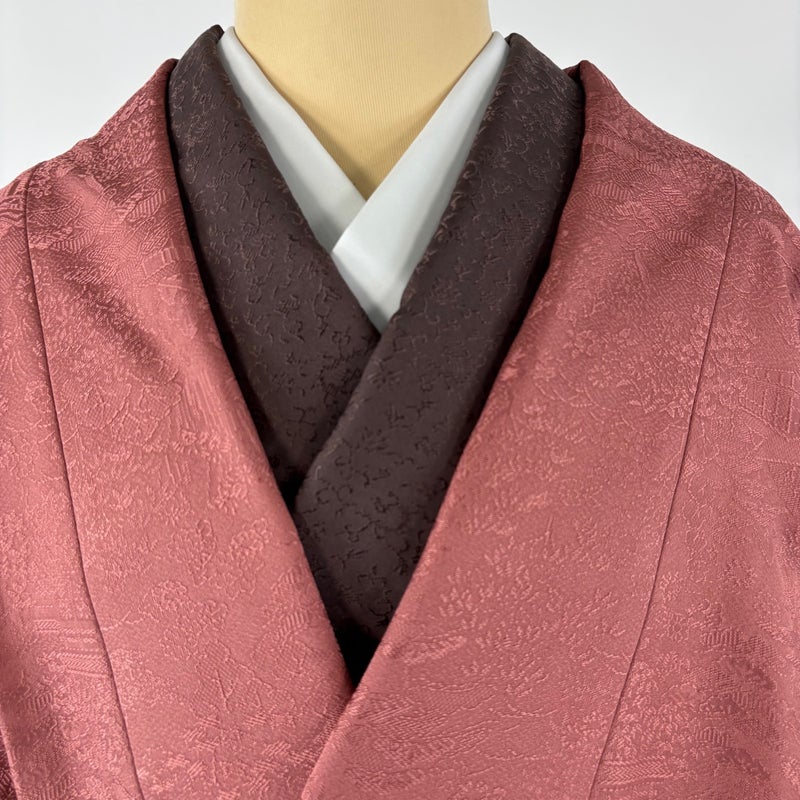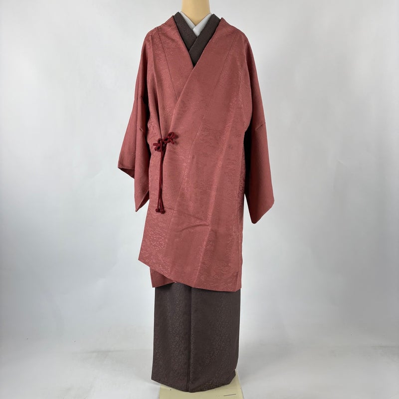 【道中着】 赤系 茜色 秀品 A 約101cm~約110cm 裄丈67cm-68cm (M)size 袖丈46cm以下 9990-29990 美品 二万以下