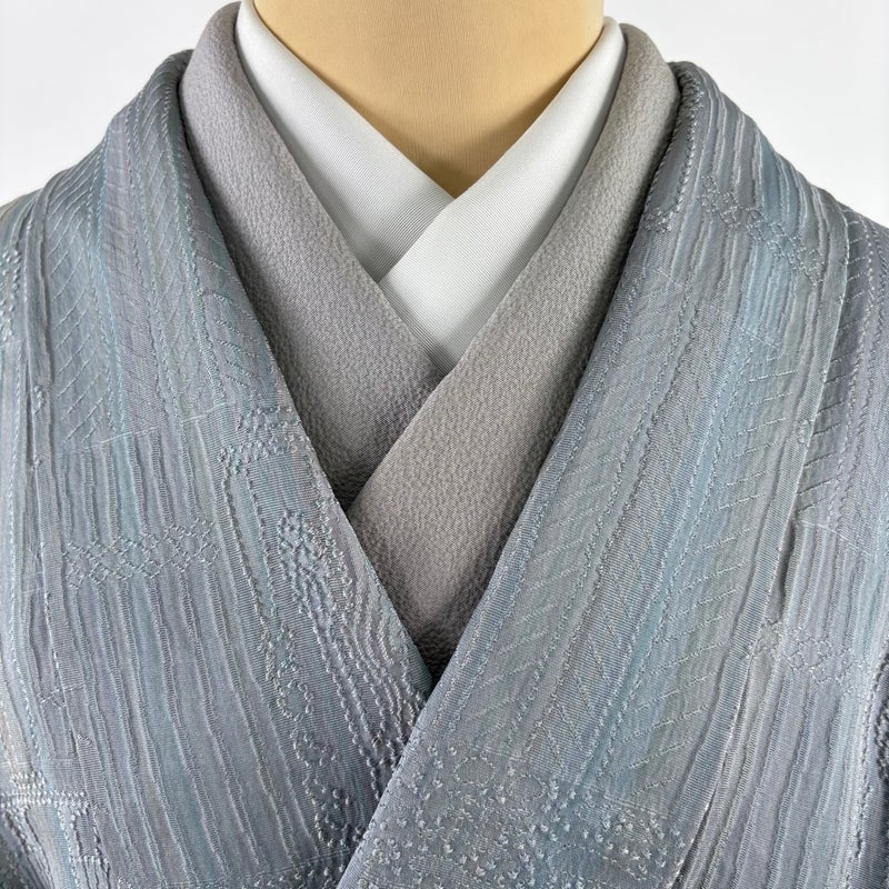 【道中着】 灰色系 青灰色 名品 A 約100cm以下 裄丈65cm (M)size 袖丈46cm以下 9990-29990 美品 二万以下