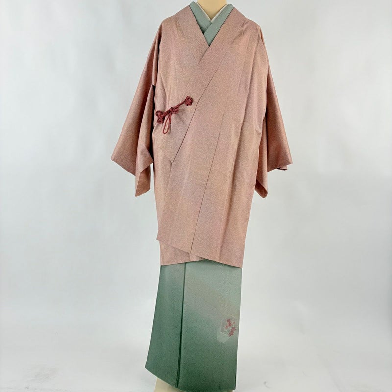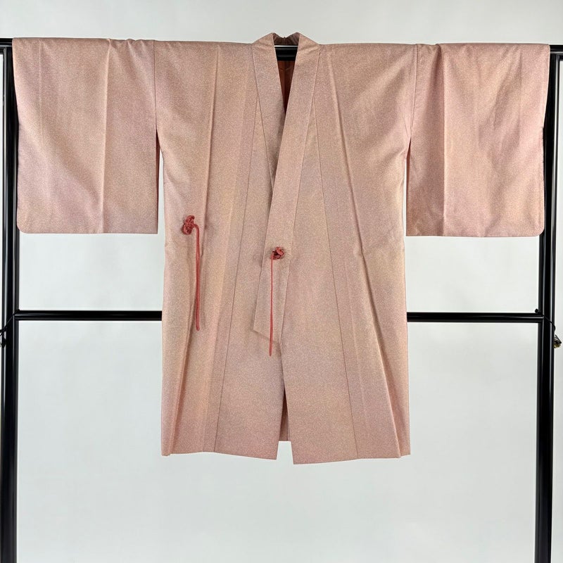 【道中着】 赤系 ピンクベージュ 秀品 A 約100cm以下 裄丈66cm (M)size 袖丈47cm 9990-29990 美品 二万以下