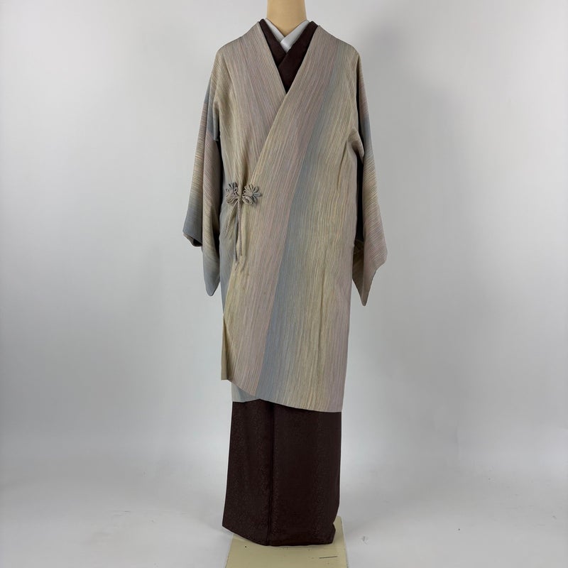 【道中着】 白系 ベージュ 逸品 C 約100cm以下 裄丈63cm-64cm (M)size 袖丈46cm以下 30000- 五万以下