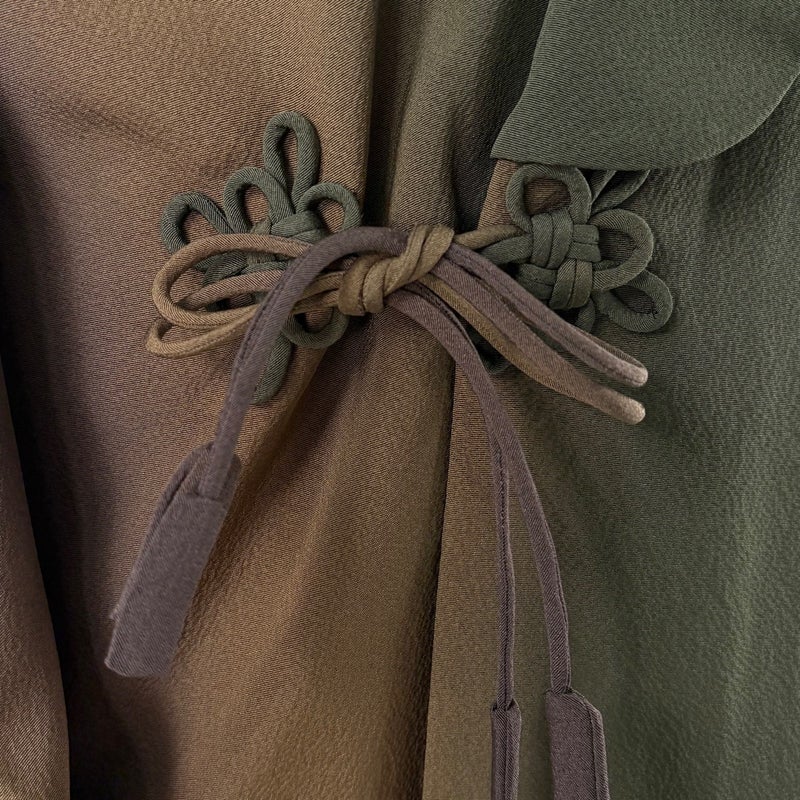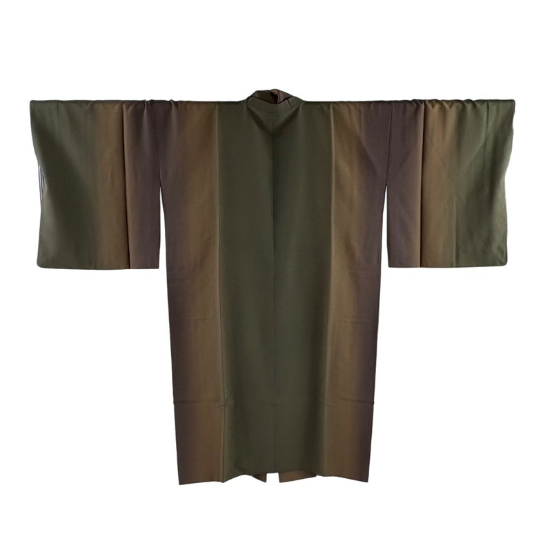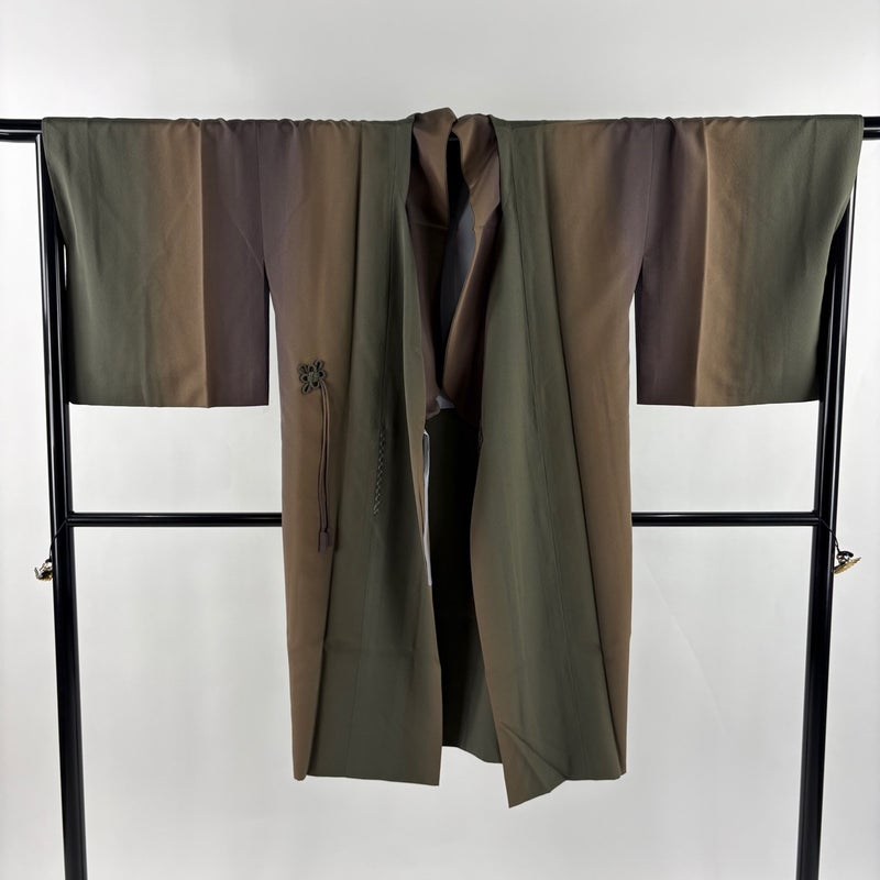 【道中着】 茶系 茶緑色 名品 A 約101cm~約110cm 裄丈69cm以上 (L)size 袖丈48cm 9990-29990 美品 二万以下