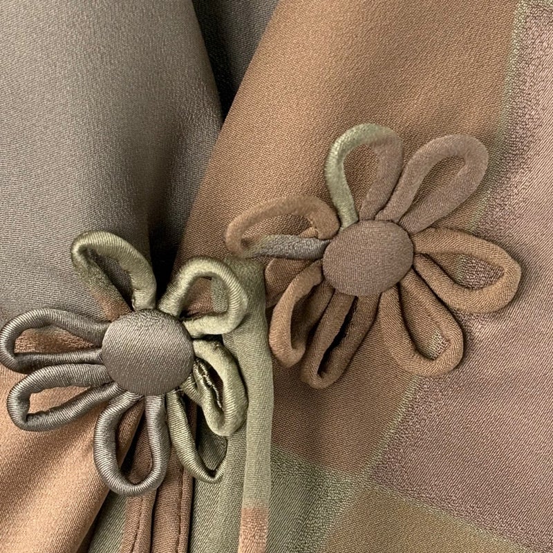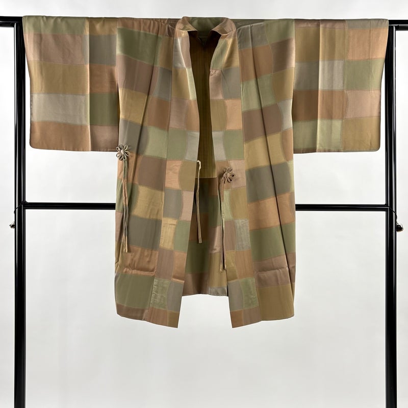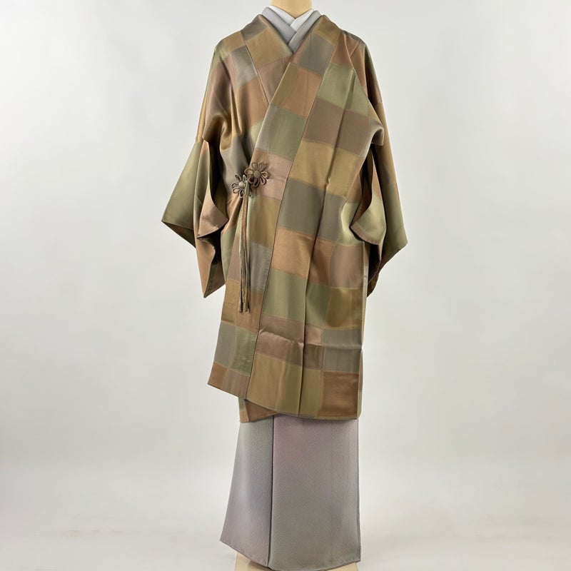 【道中着】 茶系 茶色 名品 A 約101cm~約110cm 裄丈63cm-64cm (M)size 袖丈46cm以下 9990-29990 美品 二万以下