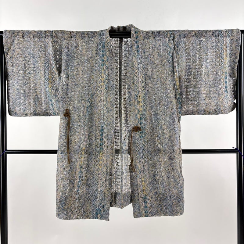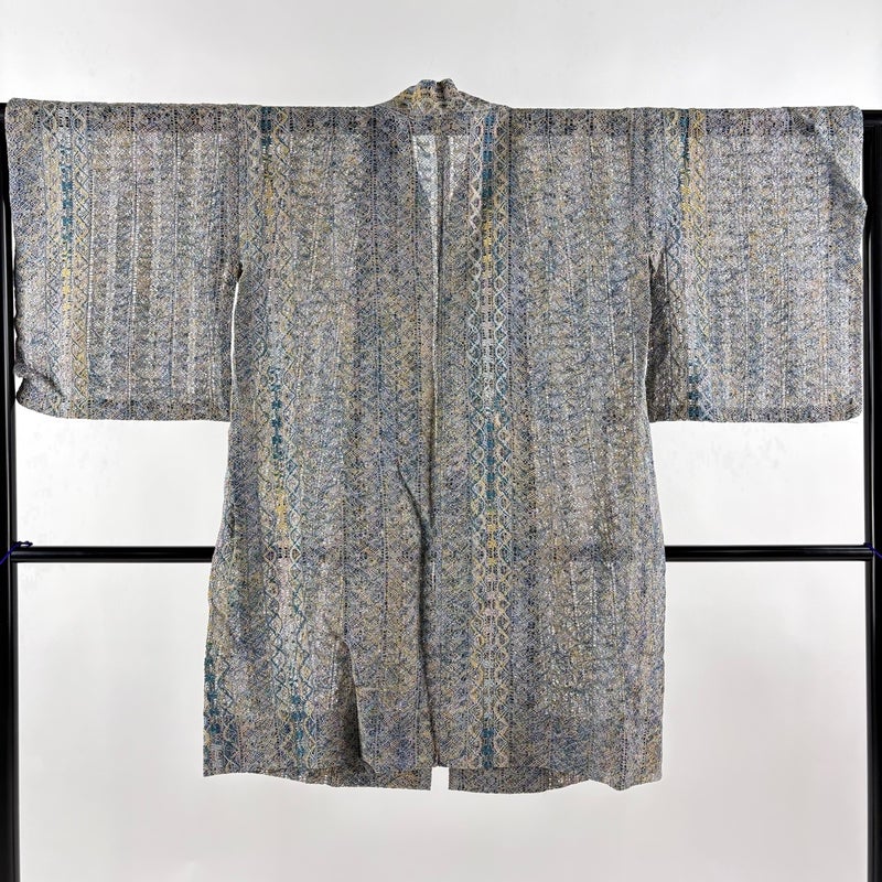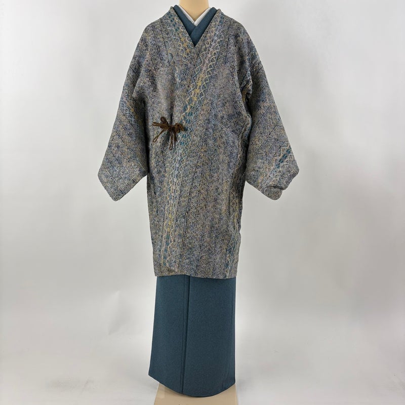 【道中着】 灰色系 灰紫 秀品 A 約100cm以下 裄丈65cm (M)size 袖丈47cm 9990-29990 美品 二万以下