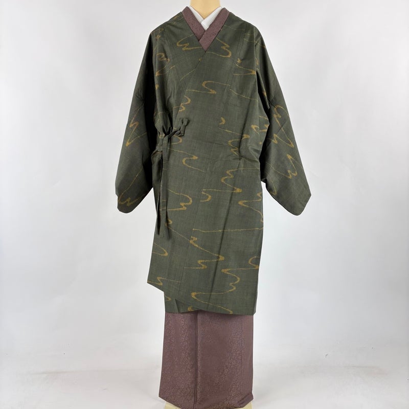 【道中着】 緑系 深緑 秀品 B 約101cm~約110cm 裄丈67cm-68cm (L)size 袖丈47cm 7990-9980 二万以下