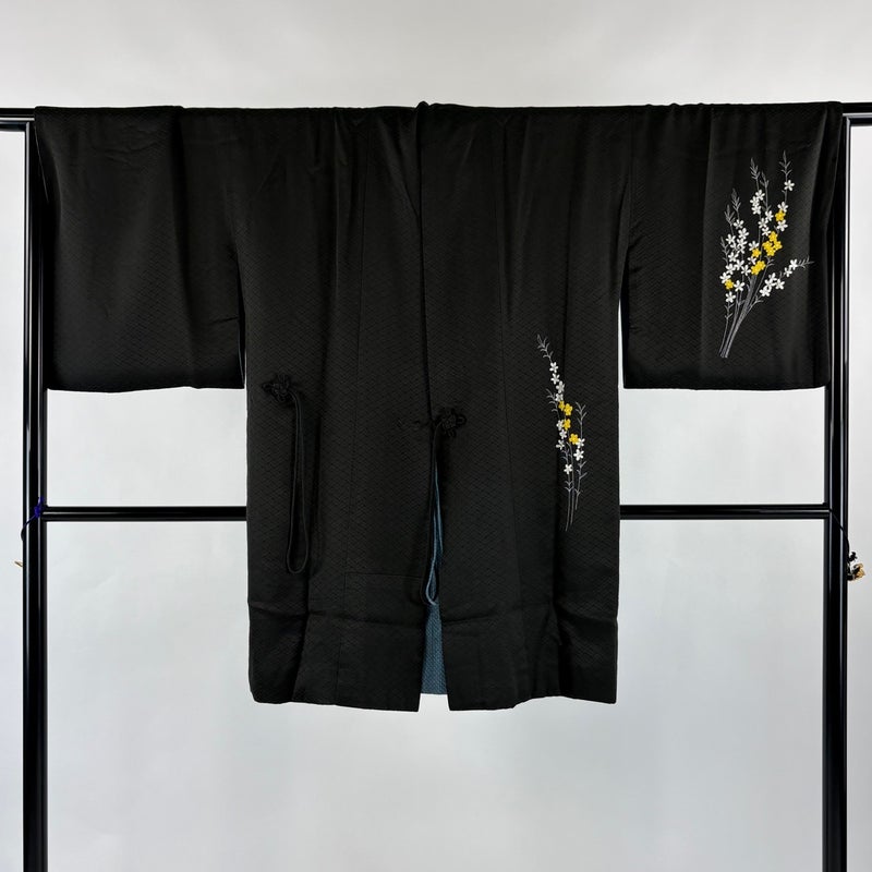 【道中着】 黒系 黒 秀品 B 約100cm以下 裄丈67cm-68cm (M)size 袖丈48cm 7990-9980 二万以下