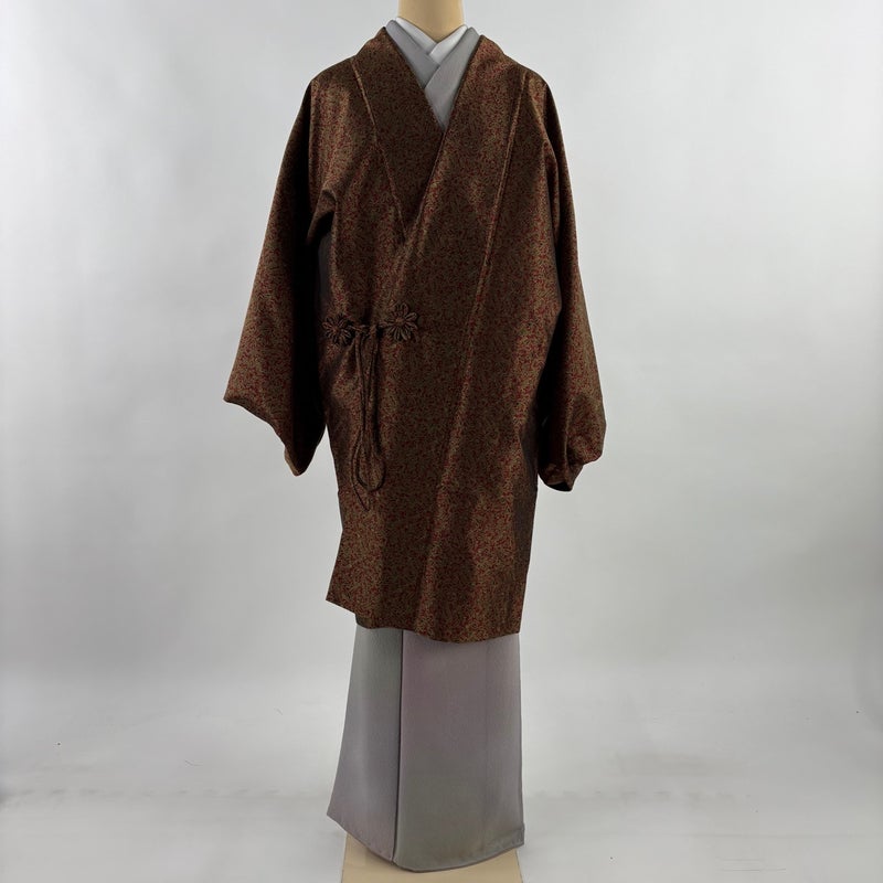 【道中着】 赤系 えんじ色 名品 B 約100cm以下 裄丈67cm-68cm (L)size 袖丈48cm 9990-29990 二万以下