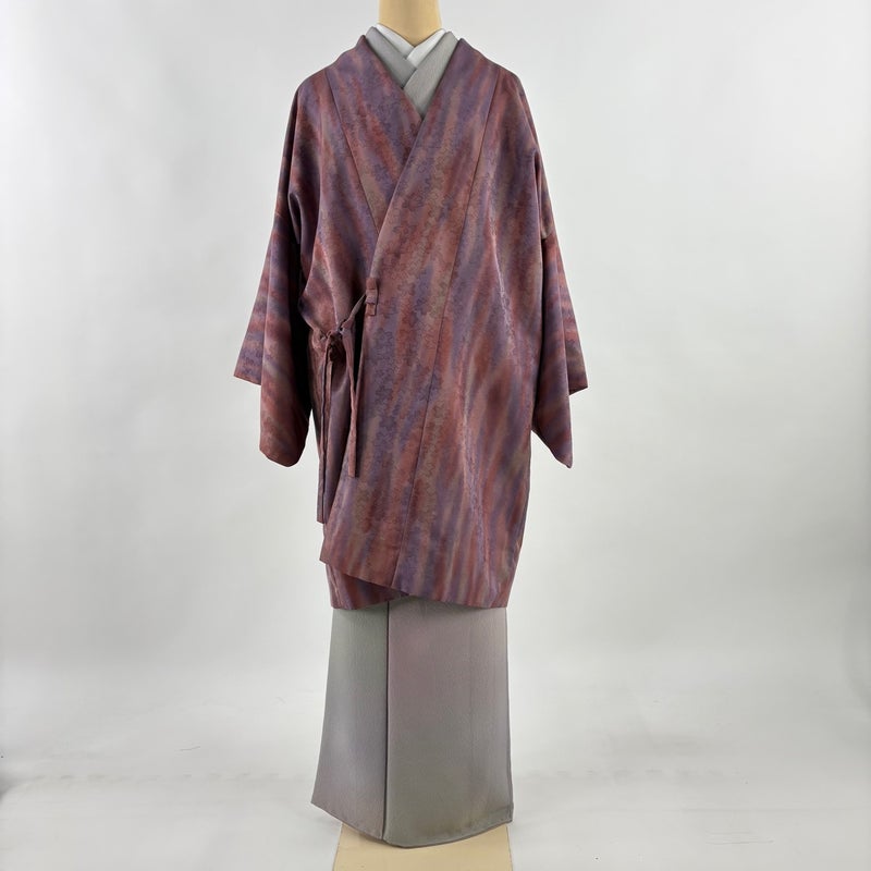 【道中着】 紫系 紫 名品 A 約100cm以下 裄丈67cm-68cm (L)size 袖丈46cm以下 9990-29990 美品 二万以下
