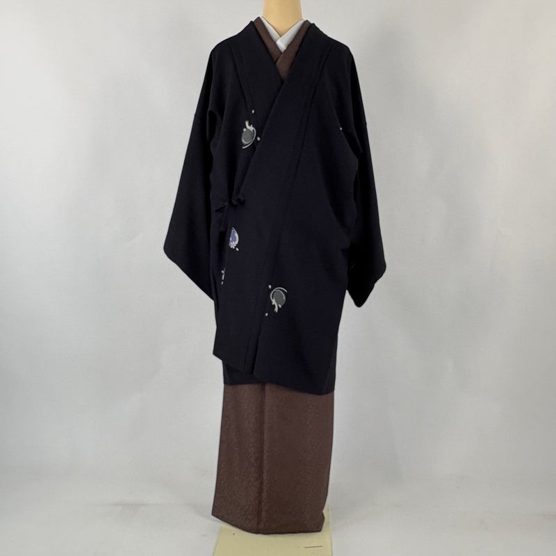 【道中着】 黒系 黒 逸品 B 約100cm以下 裄丈67cm-68cm (L)size 袖丈46cm以下 30000- 五万以下