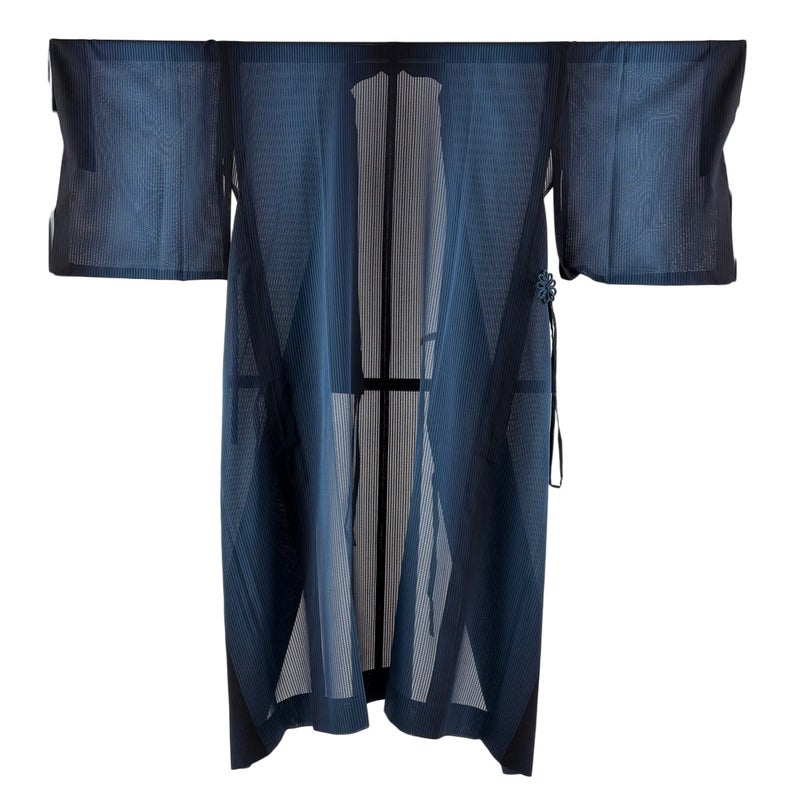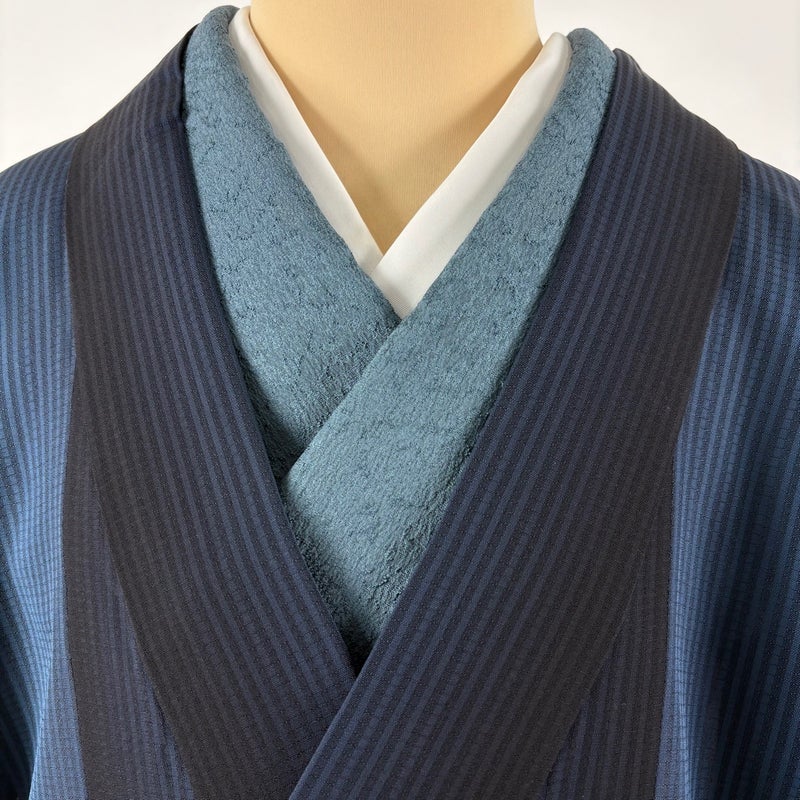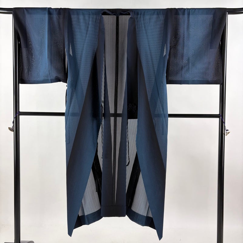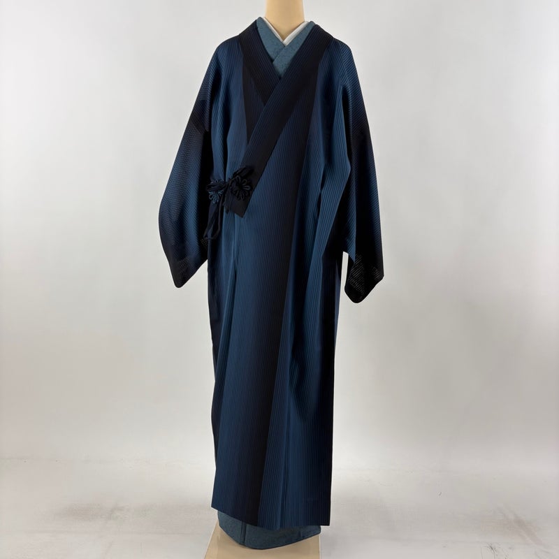 【道中着】 青系 紺色 逸品 A 約130cm~約139cm 裄丈67cm-68cm (L)size 袖丈48cm 30000- 美品 五万以下