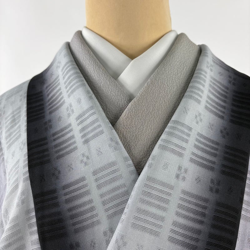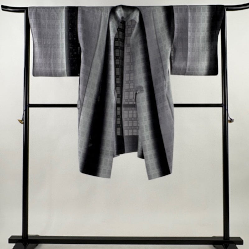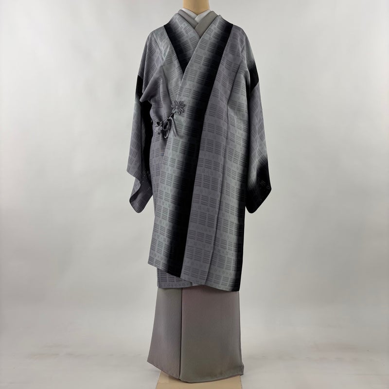 【道中着】 灰色系 灰紫 逸品 A 約101cm~約110cm 裄丈65cm (M)size 袖丈48cm 30000- 美品 五万以下