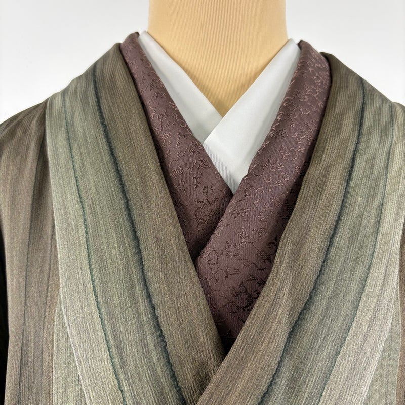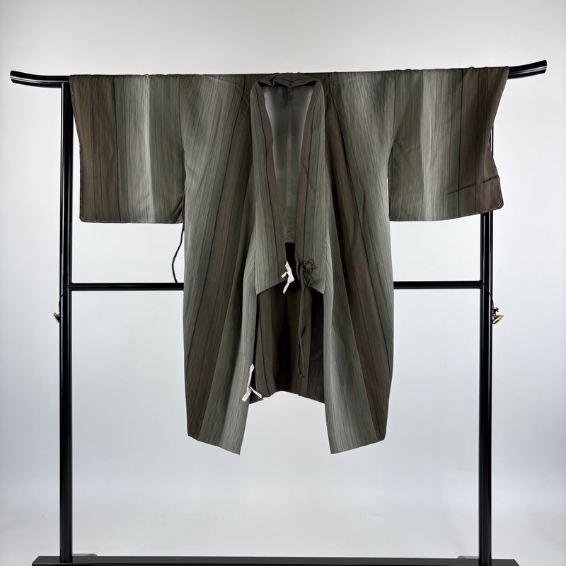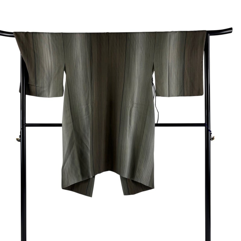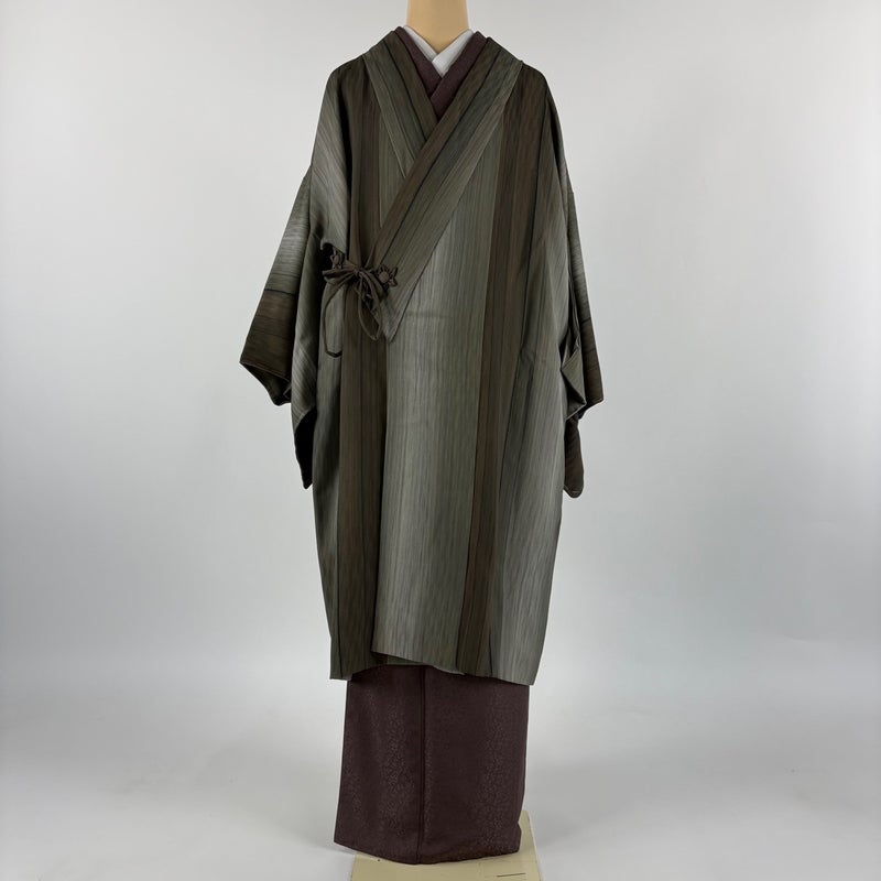 【道中着】 灰色系 灰緑 秀品 B 約101cm~約110cm 裄丈69cm以上 (L)size 袖丈47cm 7990-9980 二万以下