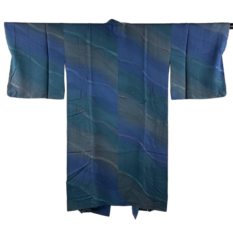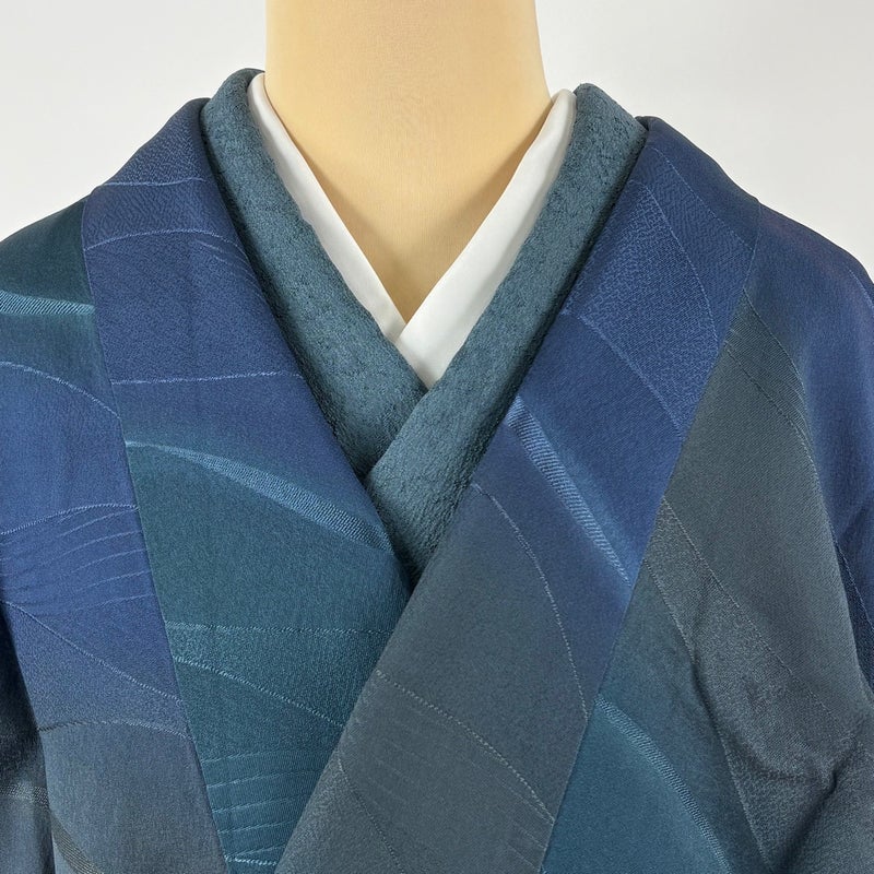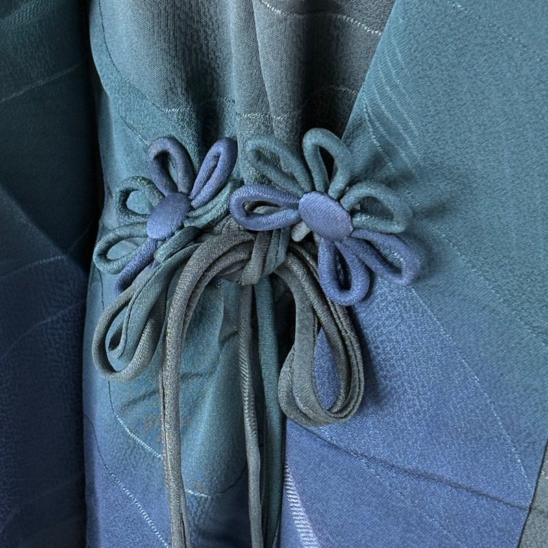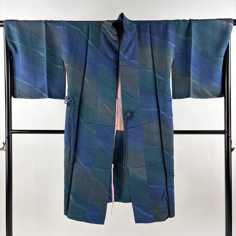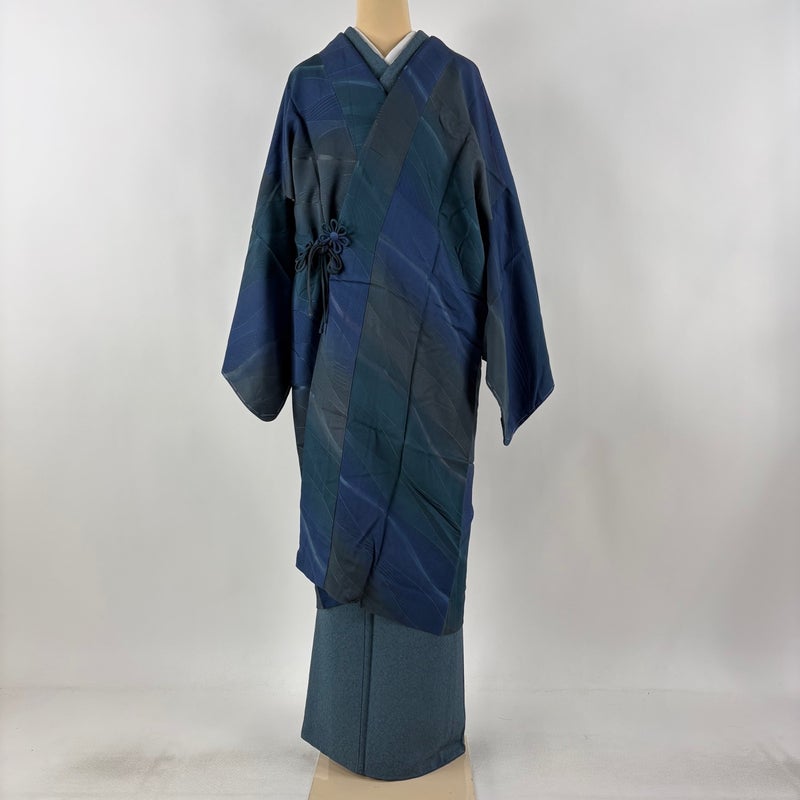 【道中着】 青系 青緑 逸品 B 約101cm~約110cm 裄丈67cm-68cm (L)size 袖丈47cm 30000- 五万以下