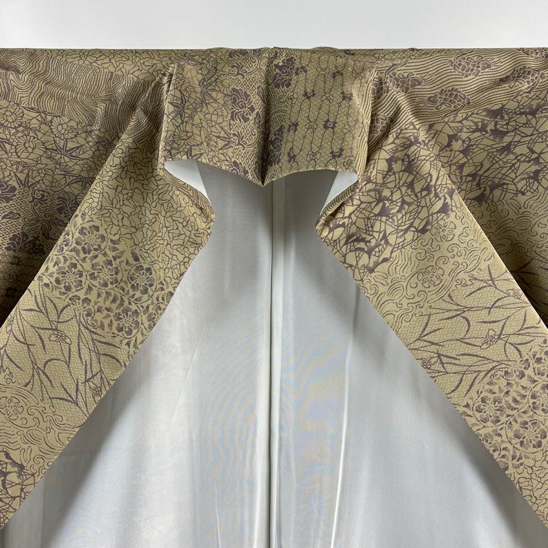 【着物ランク】逸品 【素材】正絹 【身丈】約155cm 【裄丈】約63cm 【袖丈】約48.5cm 【袖幅】約32cm 【前幅】約24cm 【後幅】約28.5cm 【サイズ】S 【着物仕立て】袷 【着用時期】10~5月 【状態ランク】ランクA 【着物着用シーン】気軽なパーティー、観劇、食事会、正月、気軽なお茶会、街着