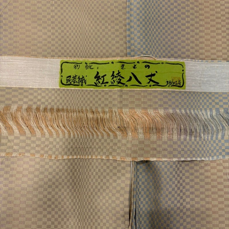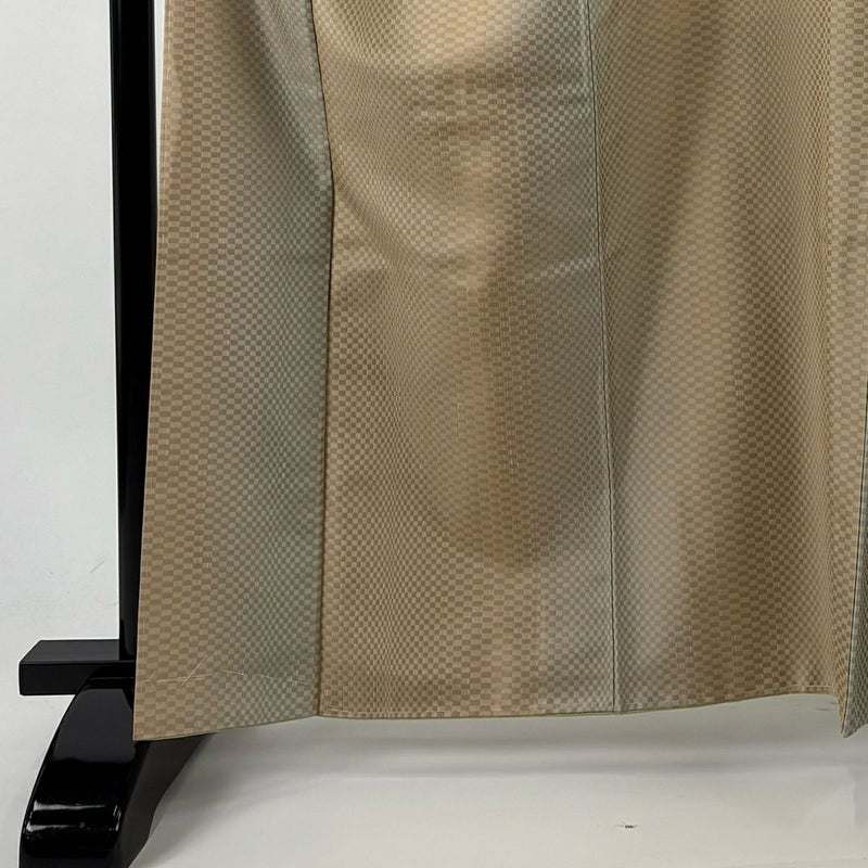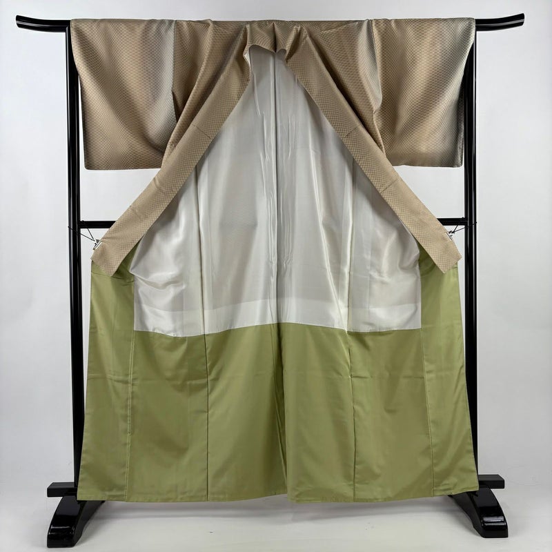 【お召】 白系 ベージュ 名品 A 約160cm~約169cm 裄丈65cm (M)size 袖丈49cm 30000- 美品 五万以下