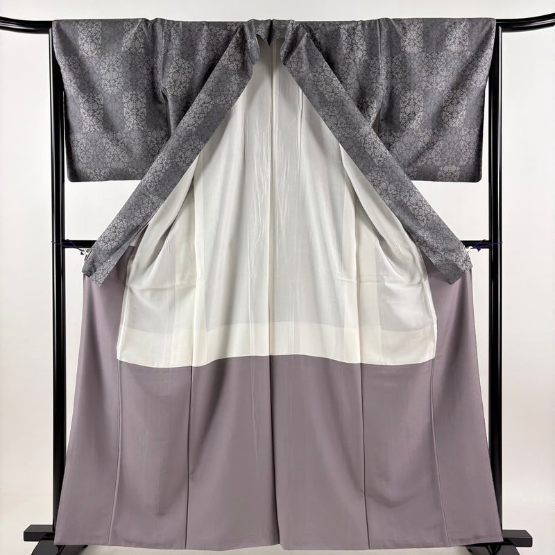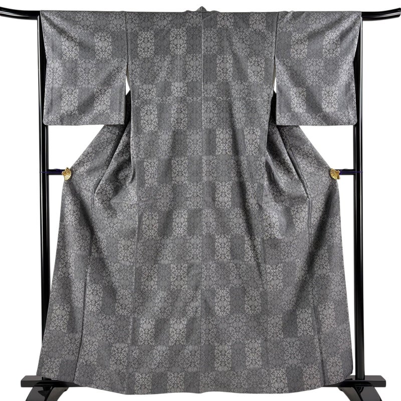 【お召】 灰色系 灰色 逸品 C 約160cm~約169cm 裄丈66cm (M)size 袖丈49cm 30000- 五万以下