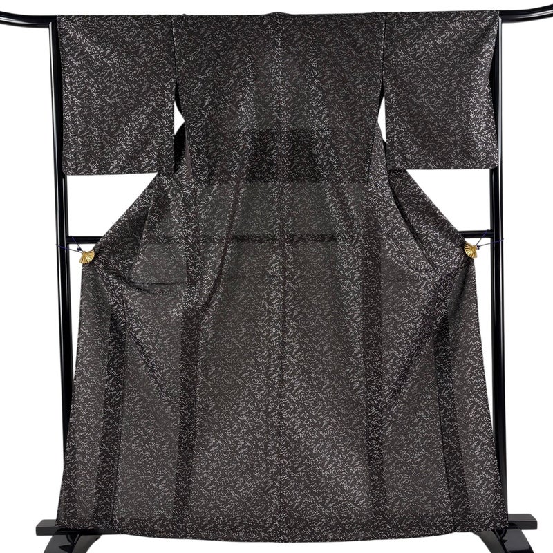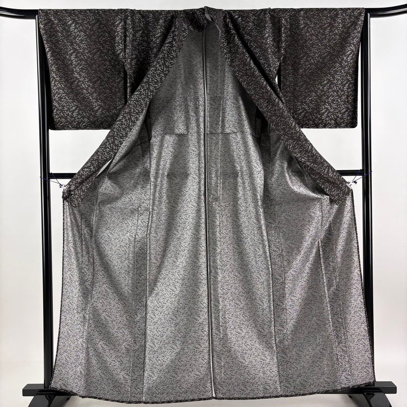 【お召】 茶系 焦茶色 逸品 A 約160cm~約169cm 裄丈66cm (M)size 袖丈49cm 30000- 美品 五万以下