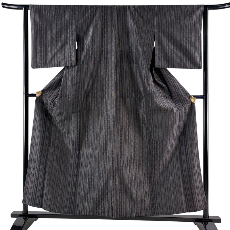【お召】 黒系 墨色 逸品 A 約150cm~約159cm 裄丈63cm-64cm (S)size 袖丈49cm 30000- 美品 五万以下
