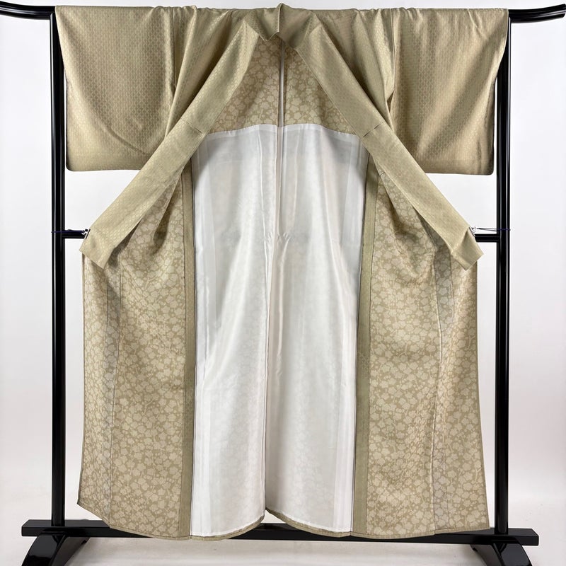 【お召】 白系 ベージュ 逸品 B 約150cm~約159cm 裄丈65cm (M)size 袖丈49cm 30000- 五万以下