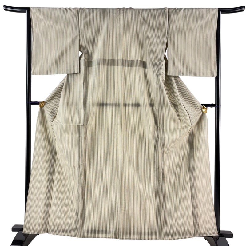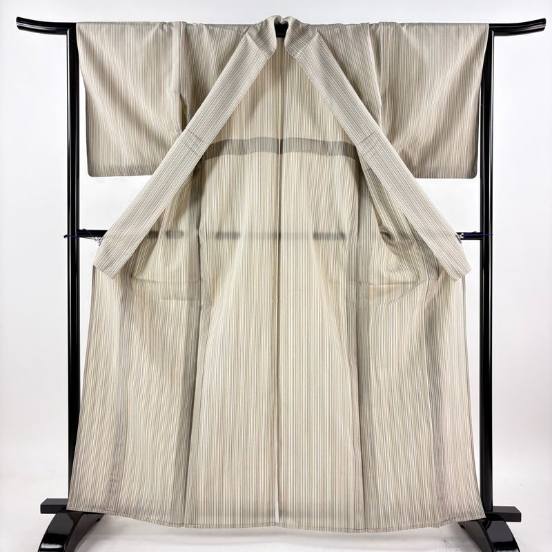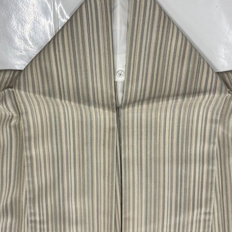 【お召】 白系 ベージュ 逸品 A 約160cm~約169cm 裄丈65cm (M)size 袖丈49cm 30000- 美品 五万以下