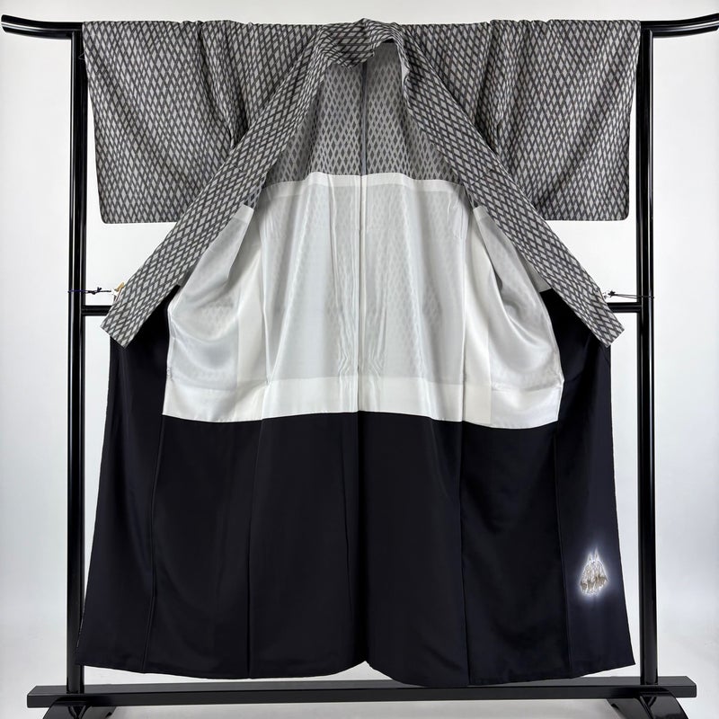 【お召】 灰色系 灰色 逸品 A 約150cm~約159cm 裄丈65cm (M)size 袖丈46cm以下 30000- 美品 五万以下