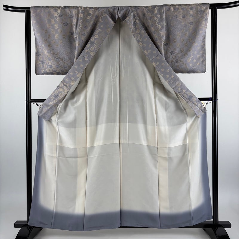 【お召】 灰色系 灰紫 逸品 A 約160cm~約169cm 裄丈62cm以下 (S)size 袖丈49cm 30000- 美品 五万以下