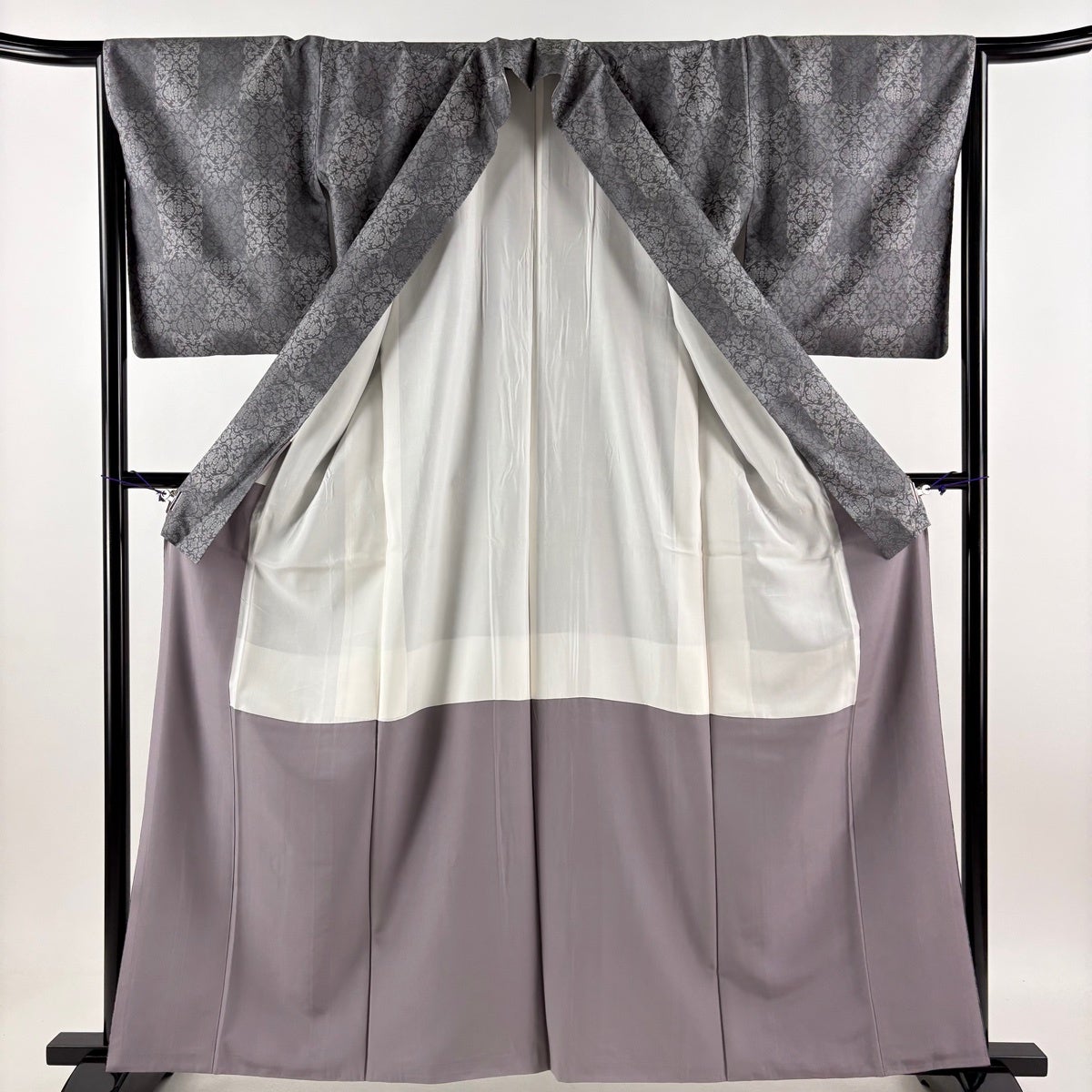 お召 身丈166cm 裄丈68cm L 薄物 証紙あり 菱 灰色 正絹 逸品