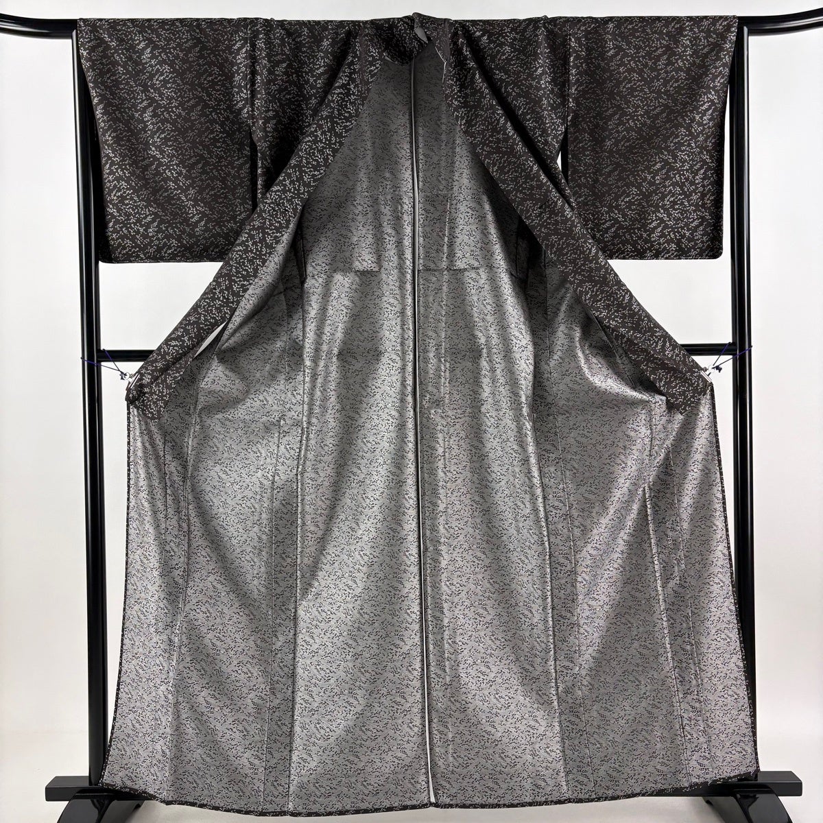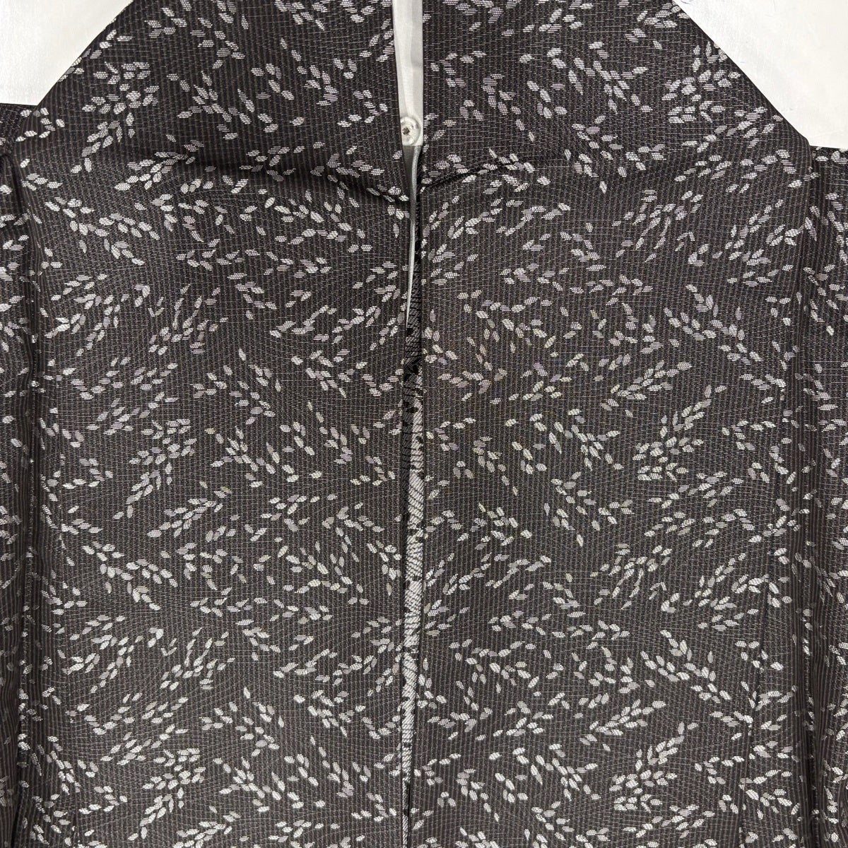 お召 身丈162.5cm 裄丈62cm S 薄物 麻の葉 黒灰 正絹 逸品