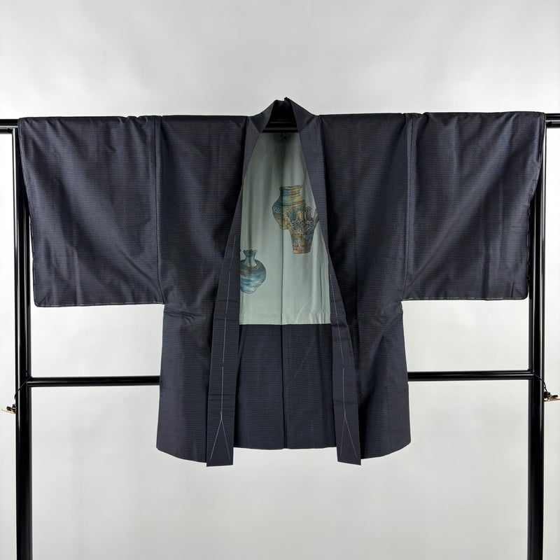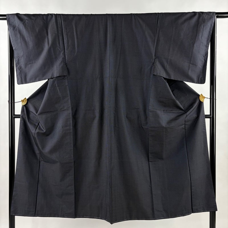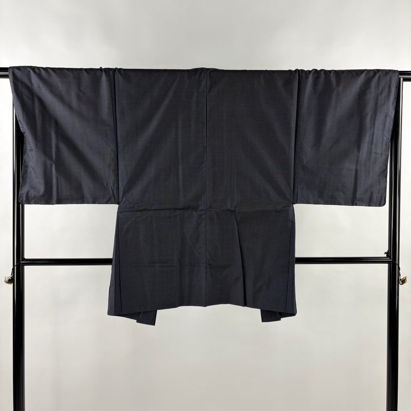 男性着物でございます。普段着やカジュアルなお洒落着として。 ワンランク上のアイテムとして着物を楽しんでみてはいかがでしょうか。 ※男性着物の着丈は身長から25~27cm引いたものを着用時の目安とさせていただきます。 着物は、後身頃に薄いシミがございます。 裏地所々にほこりの付着がございます。 羽織は、表地にシワが所々ございます。 リユース品としては良い状態で、まだまだご活用頂けると思われます。 ※なお、厳しく商品の状態確認を行っておりますが、記載の汚れ以外にも見落とし箇所がある可能性がある旨ご了承いただけますと幸いです。 沢山の商品の中からご覧いただき誠にありがとうございます。 【PR2】