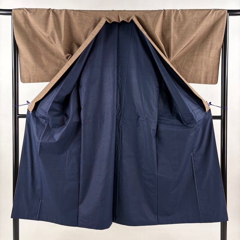 【男着物】 茶系 茶色 秀品 A 約140cm~約149cm 裄丈66cm (S)size 袖丈47cm 7990-9980 美品 二万以下