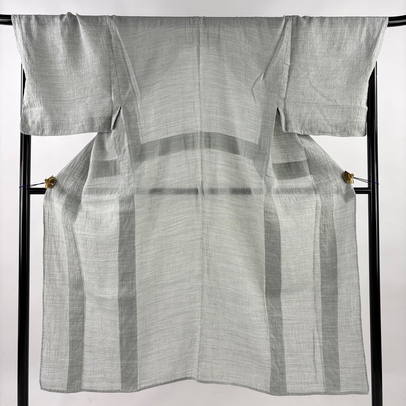 【男着物】 灰色系 灰緑 名品 B 約140cm~約149cm 裄丈69cm以上 (L)size 袖丈49cm 9990-29990 五万以下