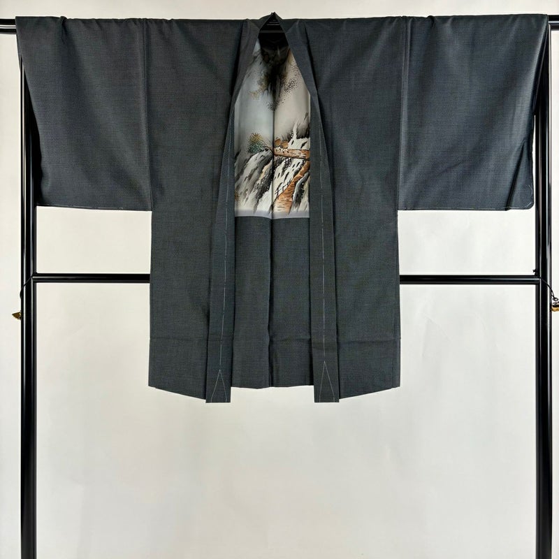 男性着物でございます。普段着やカジュアルなお洒落着として。 ワンランク上のアイテムとして着物を楽しんでみてはいかがでしょうか。 ※男性着物の着丈は身長から25~27cm引いたものを着用時の目安とさせていただきます。 ※身丈・裄丈の縫込みの長さは測っておりません。 羽織は裏地に薄いシミがございます。 リユース品としては目立った染み傷なく、状態の良いお品でございます。 ※なお、厳しく商品の状態確認を行っておりますが、記載の汚れ以外にも見落とし箇所がある可能性がある旨ご了承いただけますと幸いです。 沢山の商品の中からご覧いただき誠にありがとうございます。