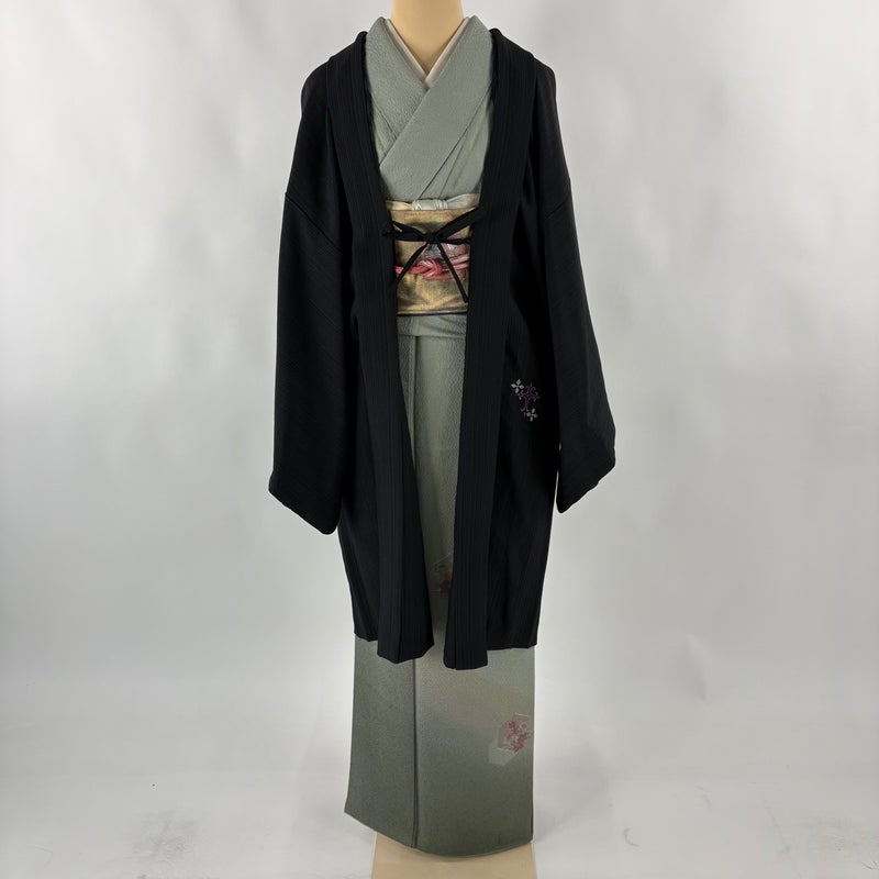【男着物】 黒系 黒 優品 A 約101cm~約110cm 裄丈69cm以上 (L)size 袖丈50cm-60cm 4000-7980 美品 二万以下