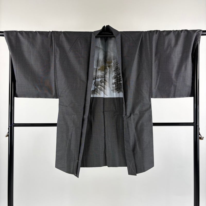 【男着物】 灰色系 黒灰 秀品 B 約140cm~約149cm 裄丈69cm以上 (L)size 袖丈49cm 4000-7980 二万以下